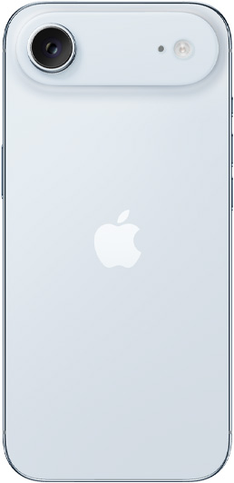 iPhone Air, face arrière, coloris bleu ciel, système caméra principale Fusion dans le plateau au sommet