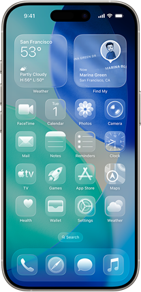 Avec les qualités optiques du verre et une expérience ultra-fluide, Liquid Glass apporte un nouveau look expressif à l’écran verrouillé, à l’écran d’accueil, au Centre de contrôle, aux apps et plus encore.