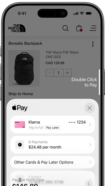 If you have a credit, debit or rewards card in Wallet that works with Apple Pay, just double‑click the Home button to open Wallet and use your card from the reader. On iPhone X or later, double‑click the side button. Learn more