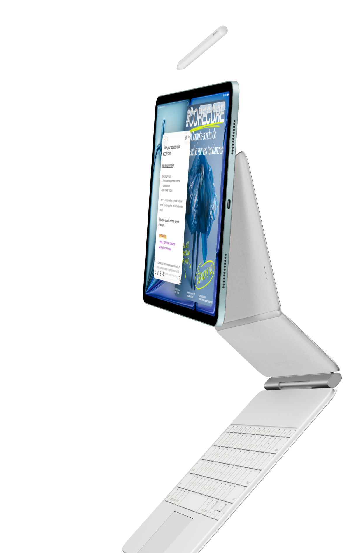 Grâce à une mémoire système unifiée 50 % supérieure, la fulgurante puce M4 livre des performances sidérantes pour sublimer tout ce que vous aimez faire sur l’iPad Air. Dotée d’une IA puissante, elle booste les outils et les capacités d’IA pour expédier vos tâches quotidiennes sans effort. Son architecture GPU offre des graphismes avancés encore plus fluides, que ce soit pour travailler, regarder des contenus en streaming, créer ou jouer. Et son incroyable efficacité énergétique assure une autonomie d’une journée entière4.
