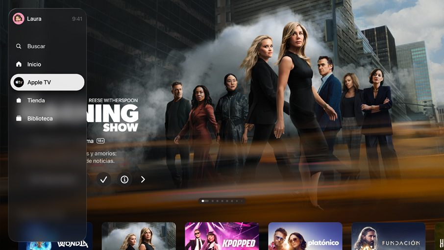 Mejorar Diálogos reproduce los diálogos con mayor claridad, ya sea que escuches a través de las bocinas integradas de tu TV, un HomePod o receptores.13 Podrás distinguir hasta los susurros más suaves entre la música y el sonido de fondo de tus series y pelis favoritas, en una experiencia de sonido verdaderamente inmersiva. Y los subtítulos aparecen en el momento justo y de forma automática para que no te pierdas de nada.14