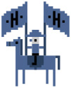 Pixel art of a person and horse sitting at a table, available Apple Watch Hermès bands in varying styles and colors