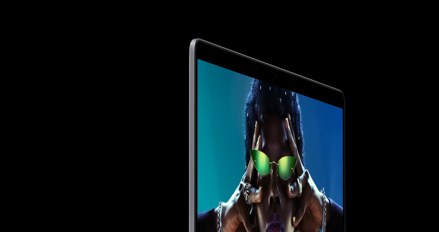 Ga met het grootste gemak van een zonovergoten terras naar een donkere studio. Het oogstrelende Liquid Retina XDR-display heeft een piek­helderheid van 1600 nits voor HDR.2 En SDR-content is bij fel licht tot wel 1000 nits helder, zodat je ook buiten beter ziet wat er op je scherm staat. Bij weinig licht dimt het display tot slechts 1 nit, zodat je ook in een donkere ruimte comfortabel kunt werken.