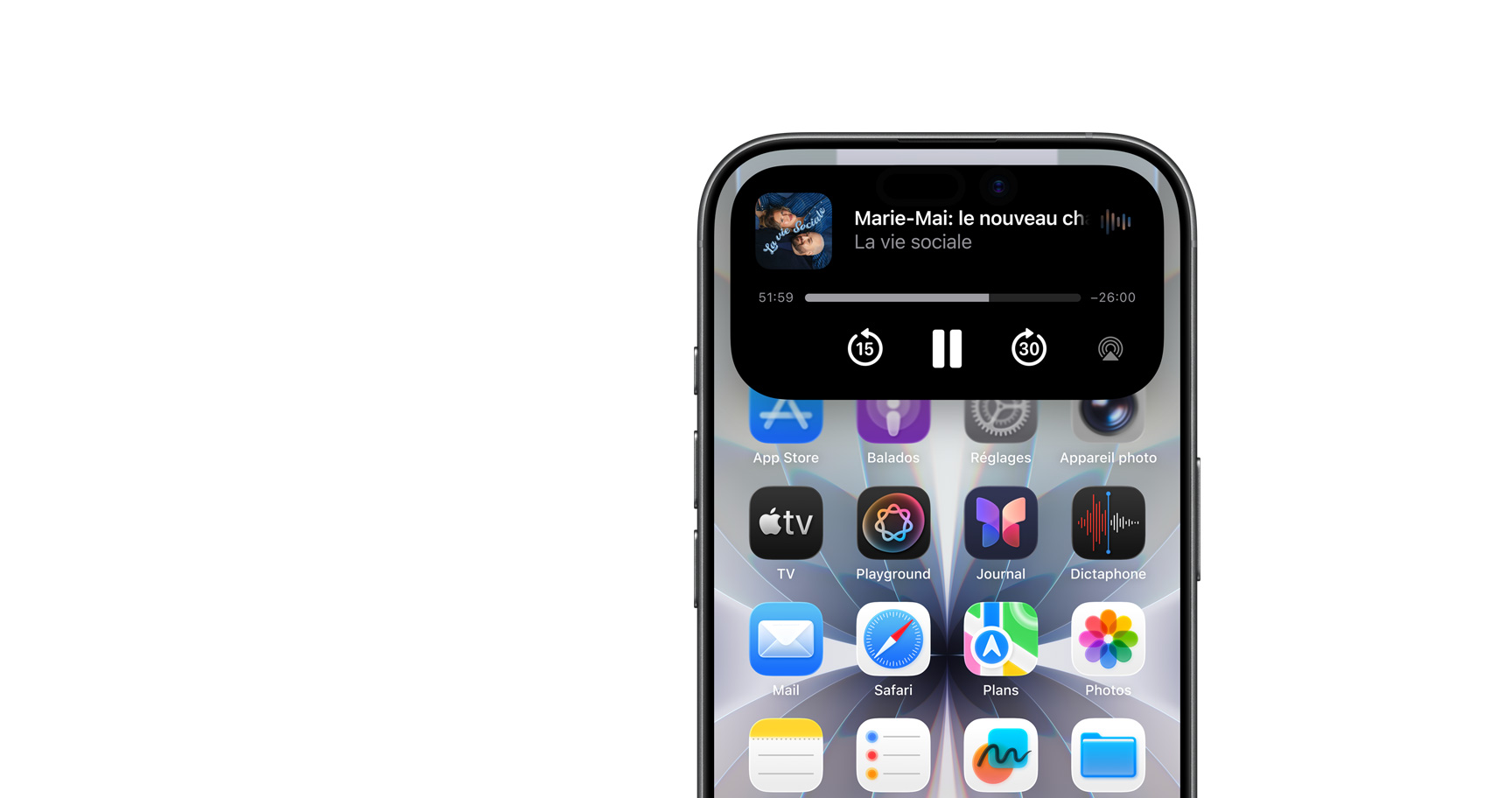 La puce A19 propulse tout ce que vous aimez sur iPhone, y compris des fonctionnalités Apple Intelligence comme la traduction en direct et Image Playground, et des technologies comme ProMotion pour vos jeux AAA. Avec l’autonomie d’une journée, vous avez tout votre temps pour travailler, regarder des séries ou parcourir le web. Et quand vous devez faire le plein, 10 minutes de recharge suffisent pour obtenir jusqu’à 8 heures de lecture vidéo avec un adaptateur haute puissance9.