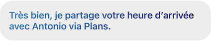 Dis Siri, partage mon heure d’arrivée prévue avec Antonio