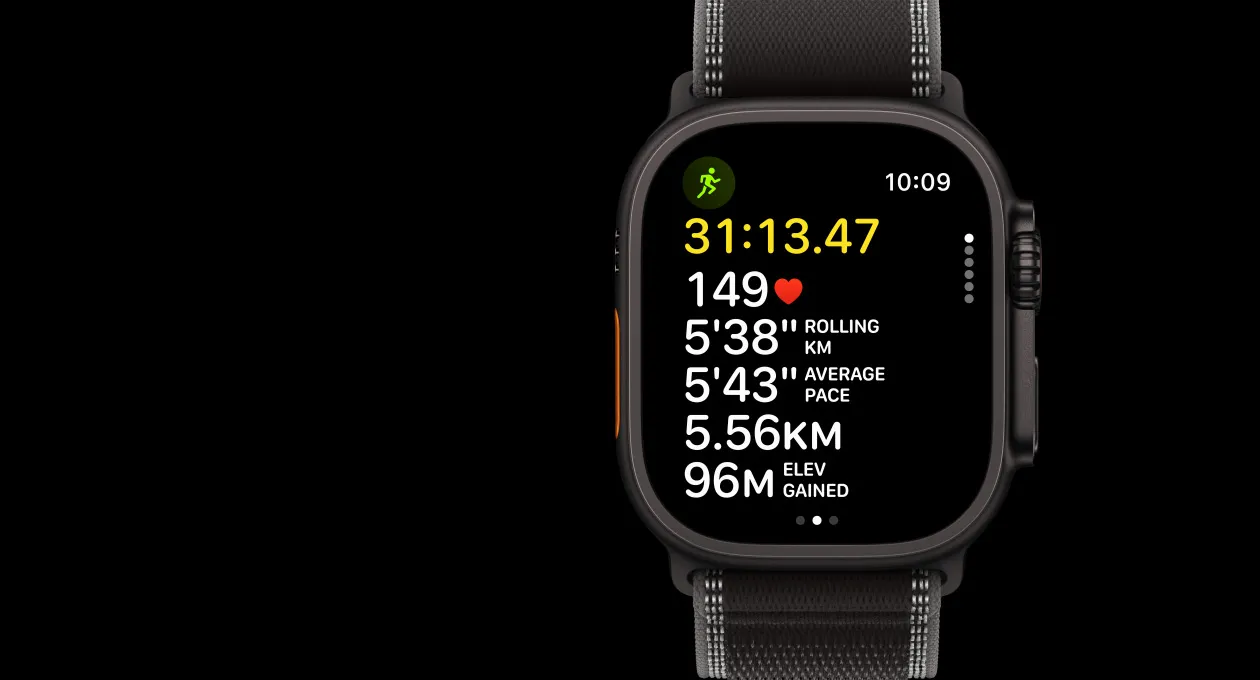 各路跑友就位。Apple Watch Ultra 3 具備你所需的各種功能,讓你練得更聰明,刷新個人最佳成績指日可待。精準的雙頻 GPS、進階指標、自訂體能訓練等強大功能,助你改善配速,步步精進。出門跑步,你只需戴上 Ultra 3,就能享受飛快的 5G 連接7