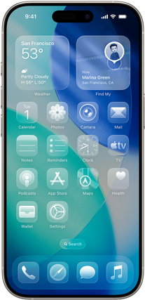 Az üveg optikai tulajdonságait a folyékonyság érzetével ötvöző Liquid Glass markánsan új megjelenést kölcsönöz a Zárolási képernyőnek, a Főképernyőnek, a Vezérlőközpontnak, az appoknak és minden másnak.
