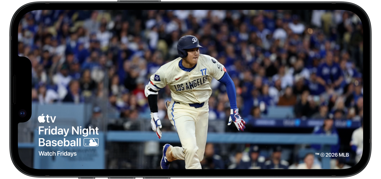iPhone 17e showing a static image of an MLB baseball game on Apple TV