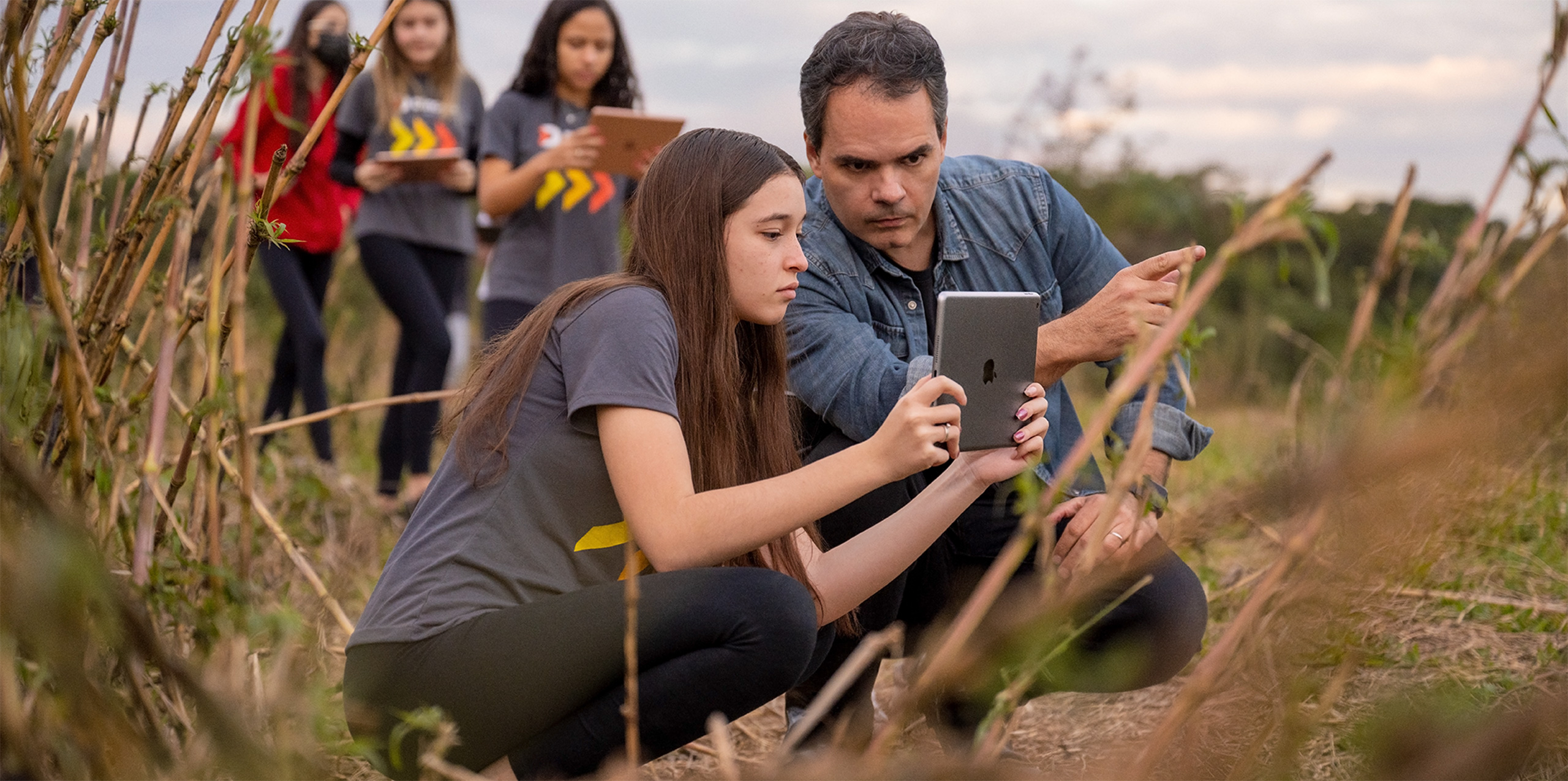 En D’Incao Instituto de Ensino, en Brasil, los estudiantes no sólo aprenden sobre los cambios positivos: también los materializan. El director y fundador de la escuela, Pedro D’Incao, junto con su hermano y cofundador, Carlos D’Incao, tomaron la decisión de incorporar la tecnología de Apple al salón de clases desde un primer momento. En la escuela se abordan temas como el cambio climático y la justicia social, y en Apple han encontrado un aliado perfecto que comparte y defiende los mismos valores.