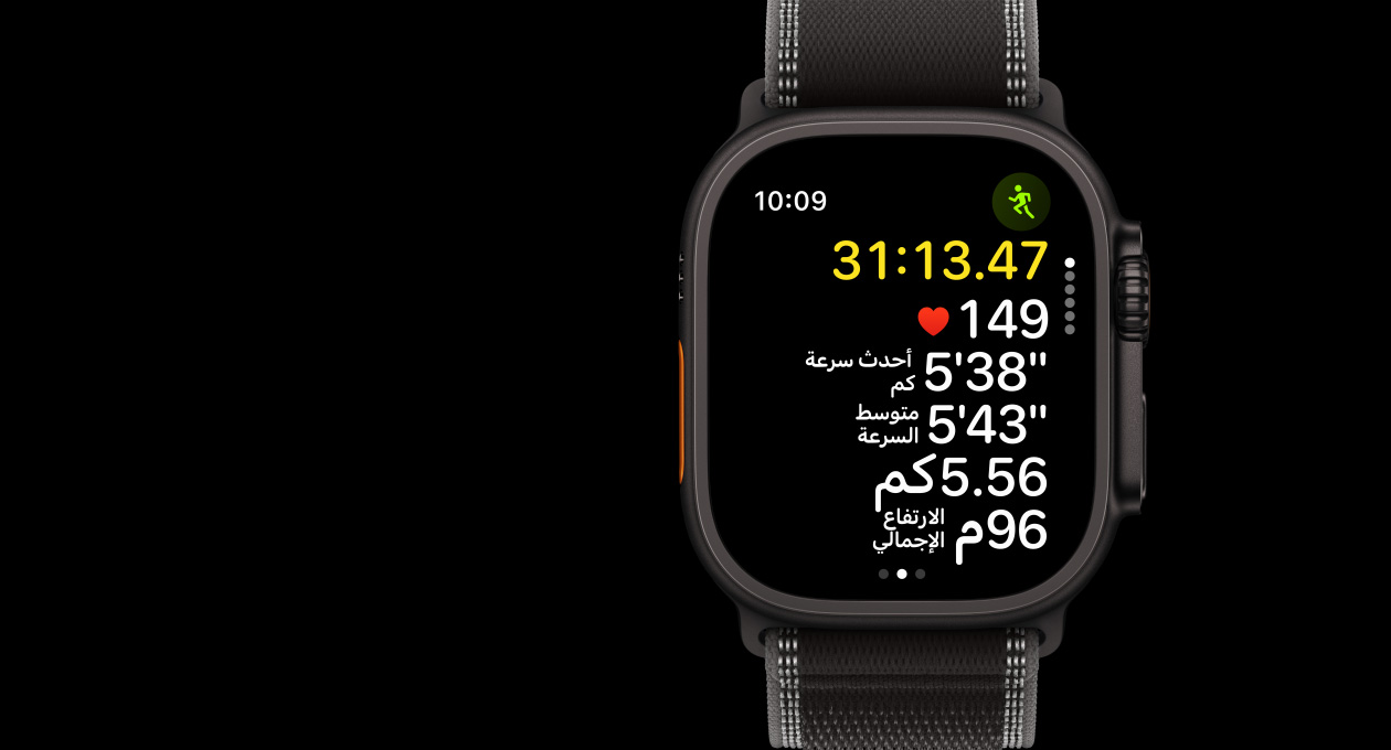 إلى كل عدّاء، ها هي Apple Watch Ultra 3 مجهّزة بكل ما تحتاج لتتمرّن بذكاء، وتنافس نفسك في تحطيم أرقامك القياسية وتقديم أقوى أداء. وتوفر لك ميزات قوية مثل نظام GPS دقيق ثنائي التردد، وقياسات متقدمة، وتمارين مخصصة، لتساعدك على ضبط روتينك والتألّق في تمارينك. مع ساعتك، لا حدود لقوّتك.