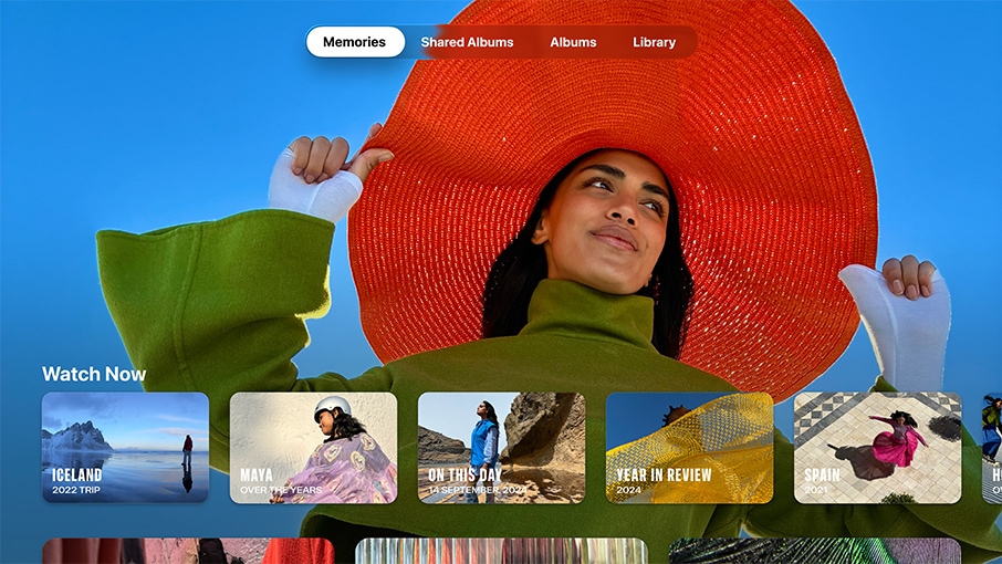 Photos. iCloud Shared Photo Library makes it easier than ever for the whole family to enjoy each other’s photos, and you can see them all right on your TV. And you can choose Memories as your screen saver and watch your special moments come alive on the big screen.