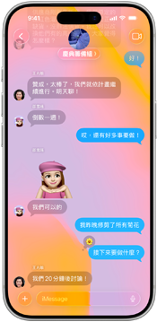 你可挑選絢麗的內建背景選項,或使用自己的任何照片,為「訊息」對話增添鮮明的個人風格。